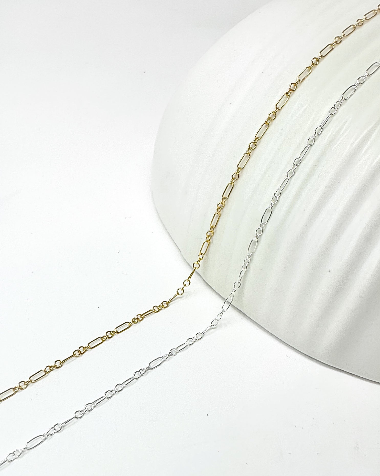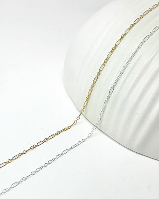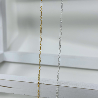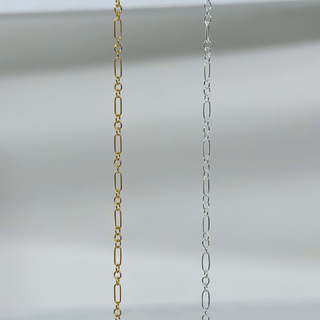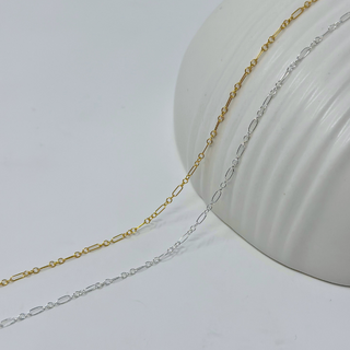 This 1.7x4.7 mm 3+1 Elongated Oval Long and Short Round Link Chain makes the perfect addition to your permanent jewelry business. Delicately crafted, it strikes the ideal balance between elegance and strength, making it suitable for permanent jewelry or as a support for pendants and charms.