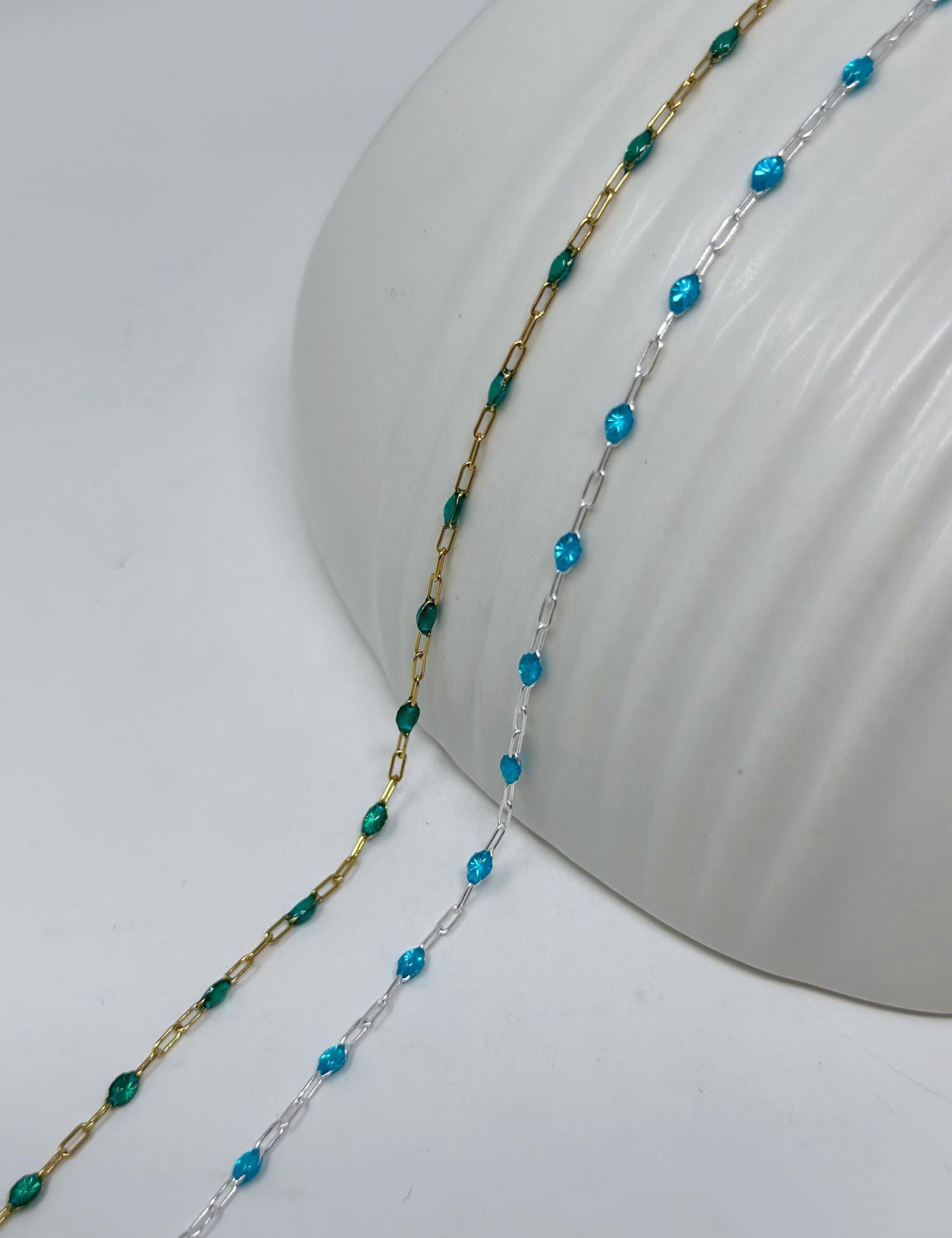 💙 Blueish Green Enamel Paperclip Chain – 14k Gold Filled & Sterling Silver