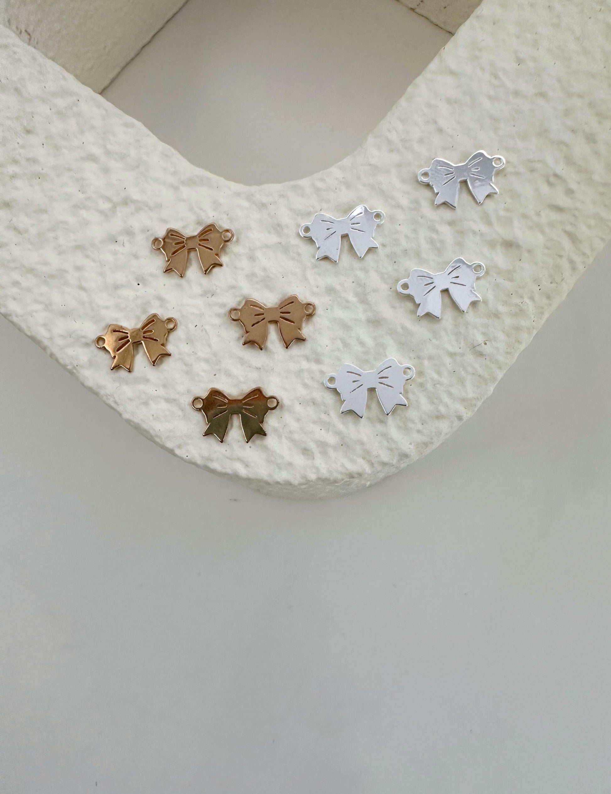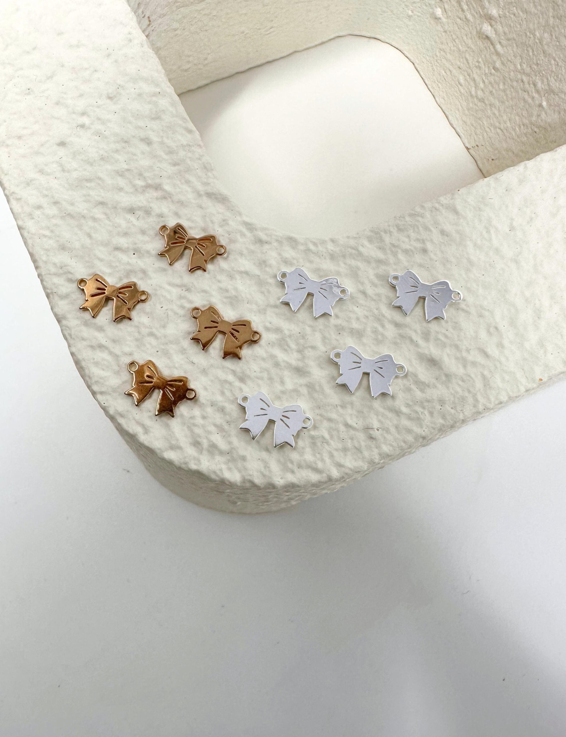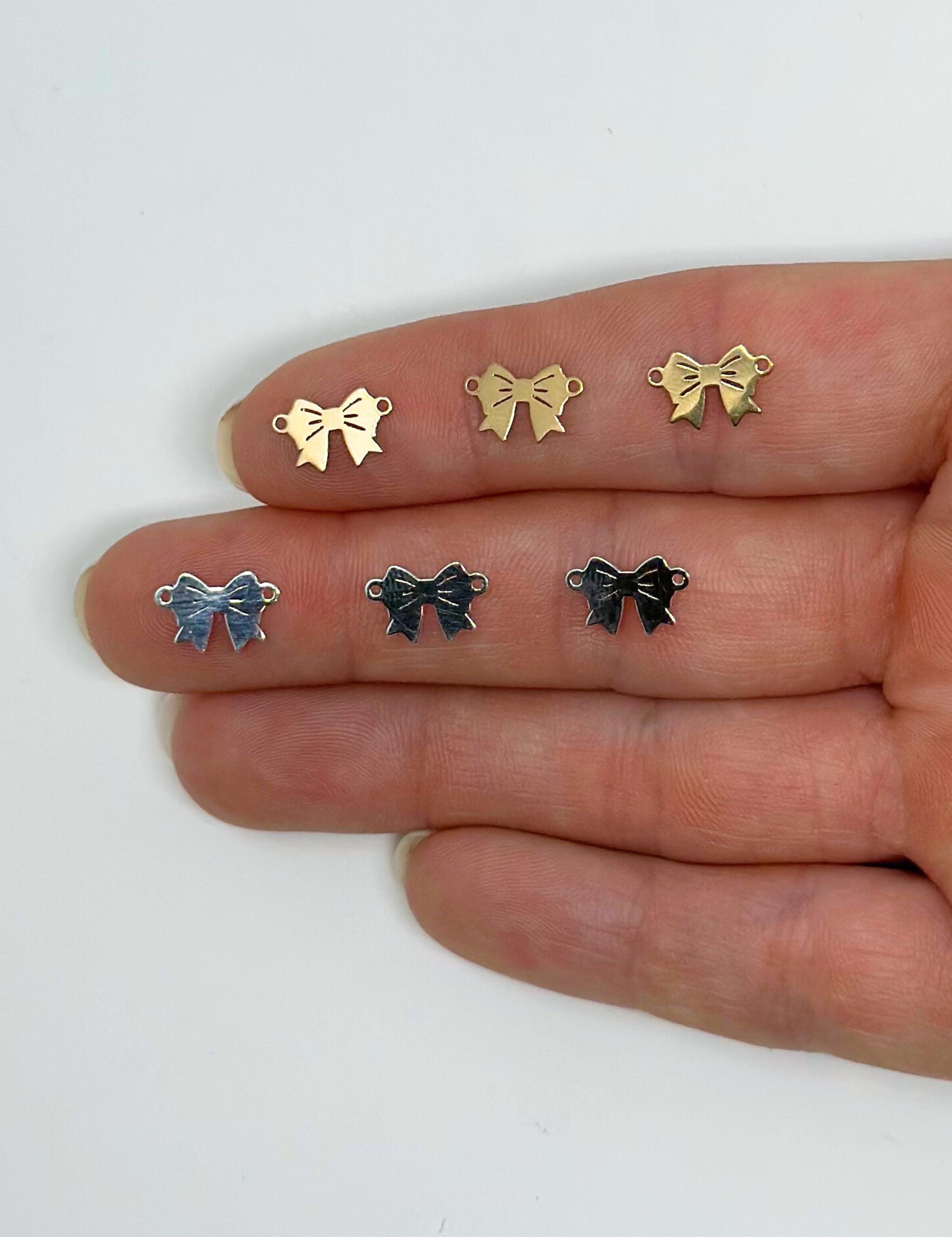 Add a touch of elegance to your designs with our beautifully crafted bow charms — available in 14k gold filled and 925 sterling silver. Perfect for permanent jewelry, bracelets, necklaces, earrings, and custom DIY gifts. Tarnish-resistant, hypoallergenic, and backed by our quality guarantee. Ideal for jewelry makers, small businesses, and wholesale buyers.