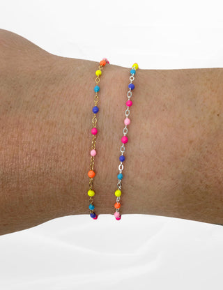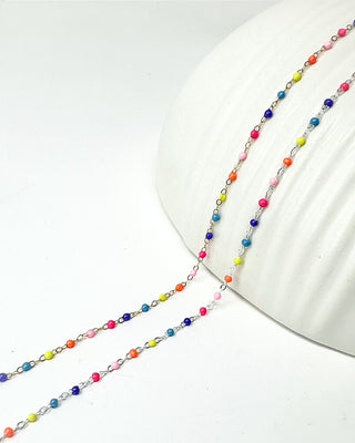 Add a pop of color to your jewelry collection with our vibrant enamel chain, available in both 14k gold filled and 925 sterling silver. This colorful chain is a customer favorite for permanent jewelry, thanks to its perfect mix of durability and delicate design. Ideal for bracelets, anklets, necklaces, or as a stylish base for charms and pendants.