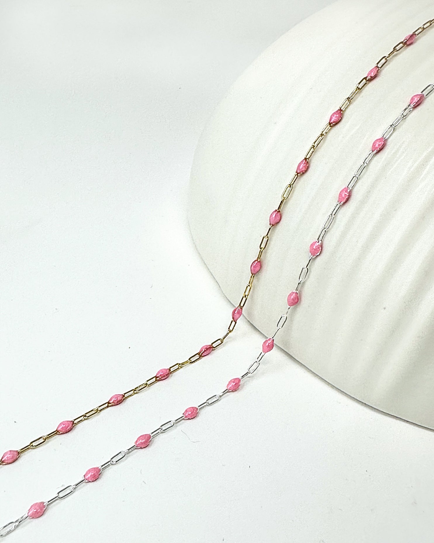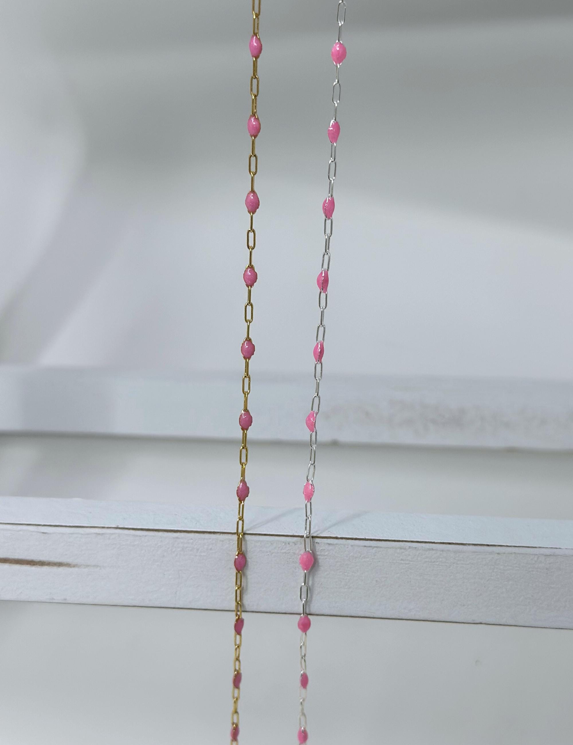 - Pink Paperclip Enamel Chain: 14k Gold Filled or 925 Sterling Silver