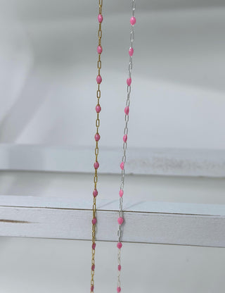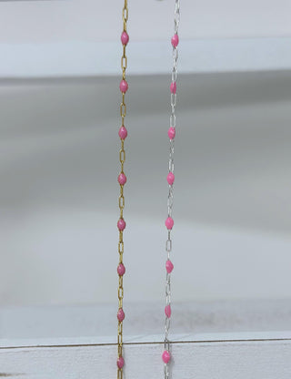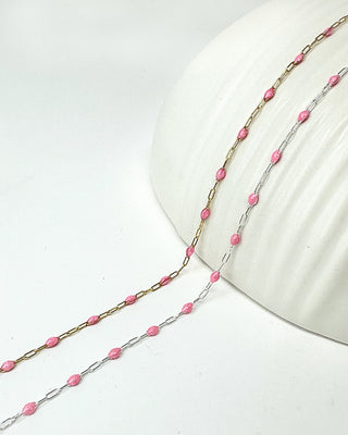 Pink Paperclip Enamel Chain: 14k Gold Filled or 925 Sterling Silver