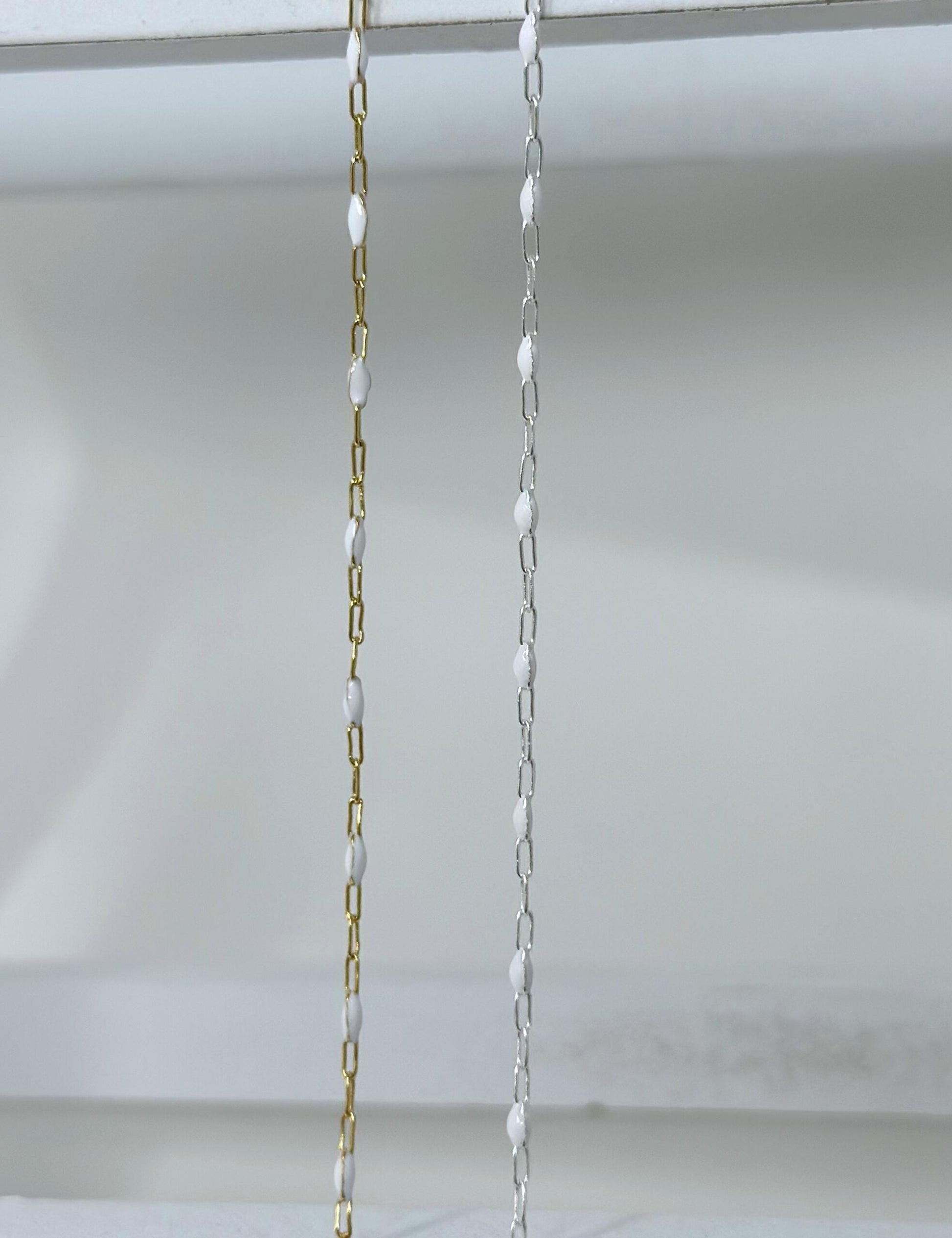 Meet your new minimalist obsession. Our White Enamel Paperclip Chain combines soft, clean tones with a modern linked silhouette. The white enamel adds a fresh and elevated touch that’s perfect for bridal stacks, summer layering, or timeless everyday wear.
